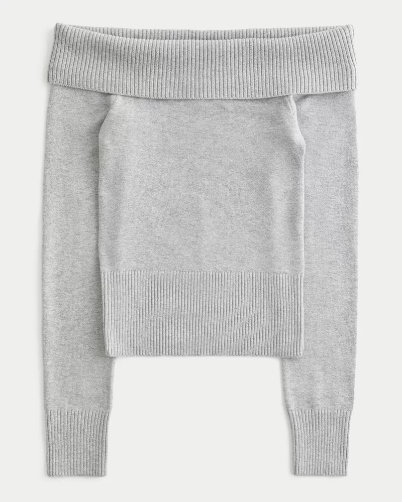 A cozy and super soft sweater in a stretchy cotton blend. Foldover off-the-shoulder neckline, long sleeves, ribbed trims. Slim Fit. Imported.