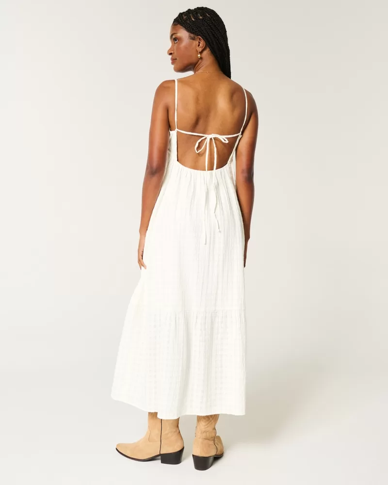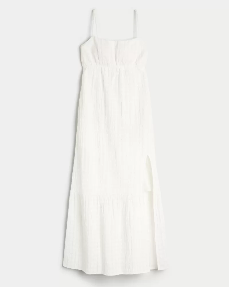 Super cute, soft and stylish, this dress features removable bra pads, an open back detail and pockets. Textured fabric, split hem detail. Imported.