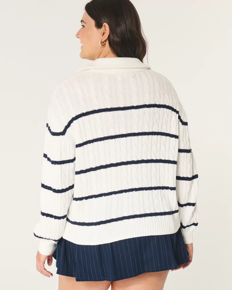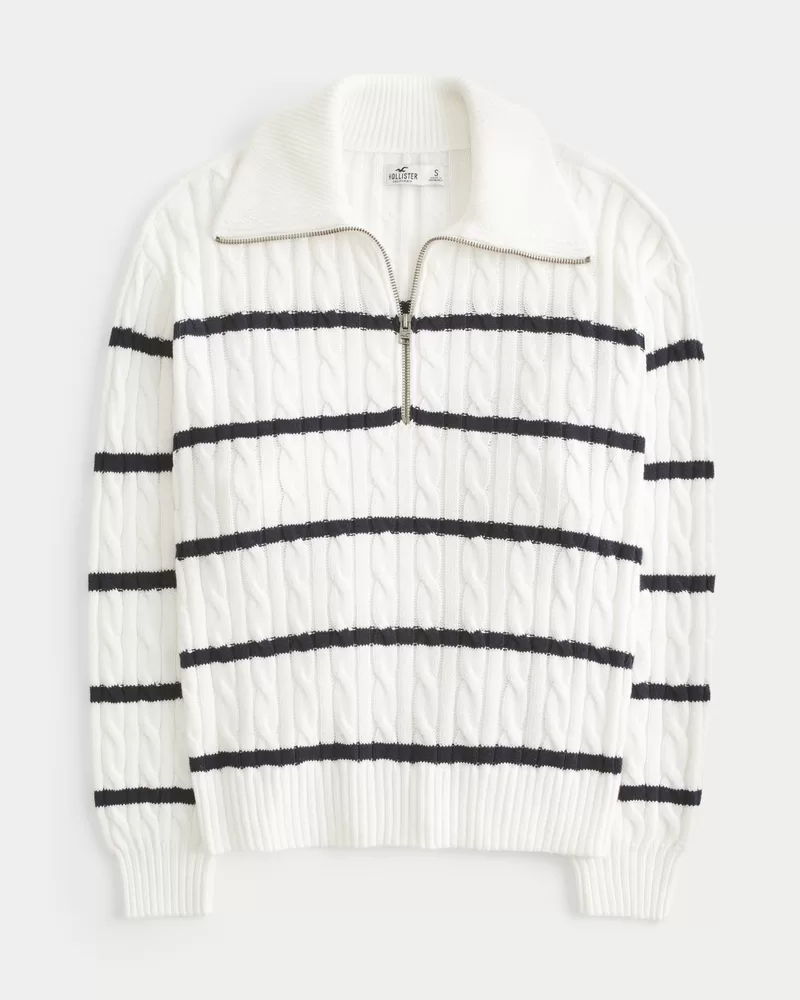 Oversized Cable-Knit Half-Zip Sweater