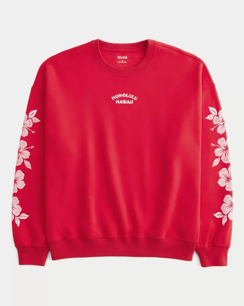Oversized Honolulu Hawaii Graphic Crew Sweatshirt