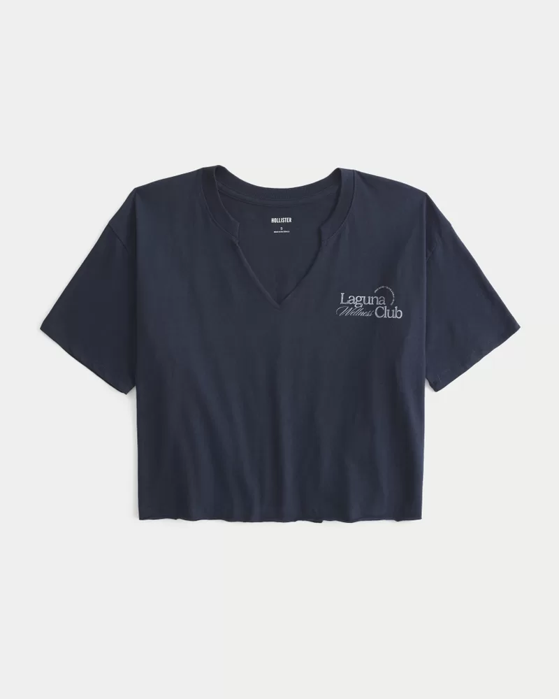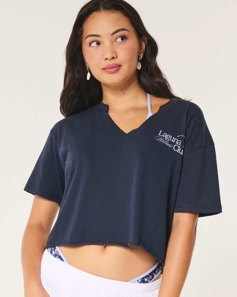 A super soft tee featuring Laguna Wellness Club print graphics at the left chest and back. Notch neckline, short sleeves. Oversized Fit. Imported.