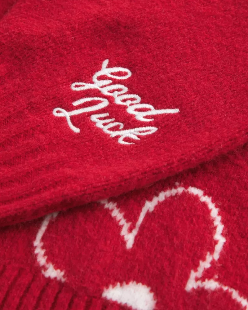 An ultra-comfortable and super soft sweater featuring Lunar New Year-inspired floral intarsia graphics and an embroidered Good Luck detail at the left sleeve. Ribbed trims, crew neckline. Imported.