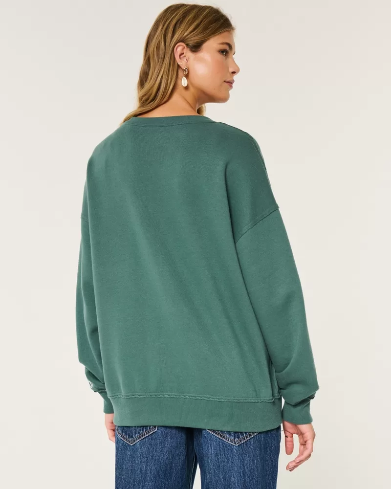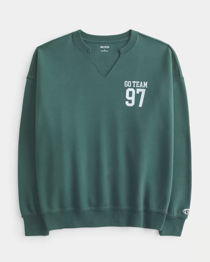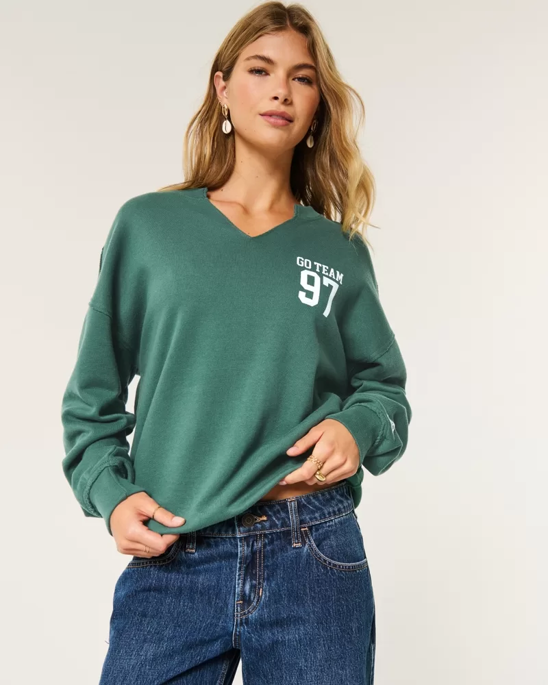 Oversized Notch-Neck Go Team Graphic Sweatshirt