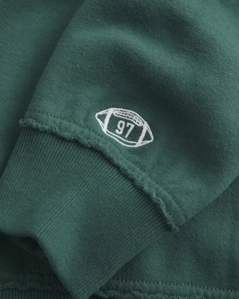 This super soft fleece sweatshirt features an athletic-inspired Go Team 97 graphic at the left chest, an embroidered football graphic at the left sleeve cuff and notch neckline. Long sleeves. Oversized Fit. Imported.