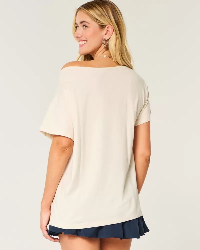 Oversized Off-the-Shoulder Good Luck Graphic Tee