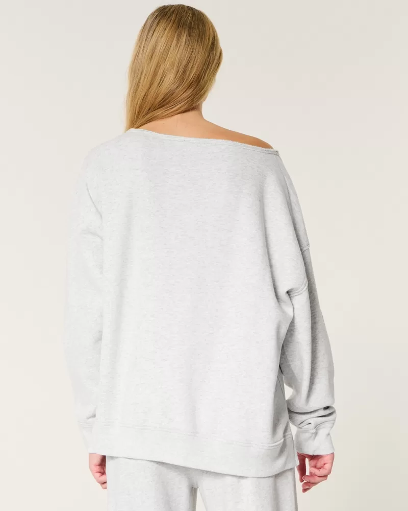 A cute and comfy sweatshirt in super soft fleece fabric, designed with a relaxed neckline that can be worn off the shoulders. Split hem details, long sleeves. Oversized Fit. Imported.