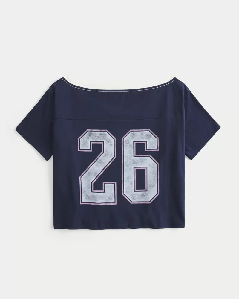 Oversized Off-the-Shoulder Varsity Graphic Tee