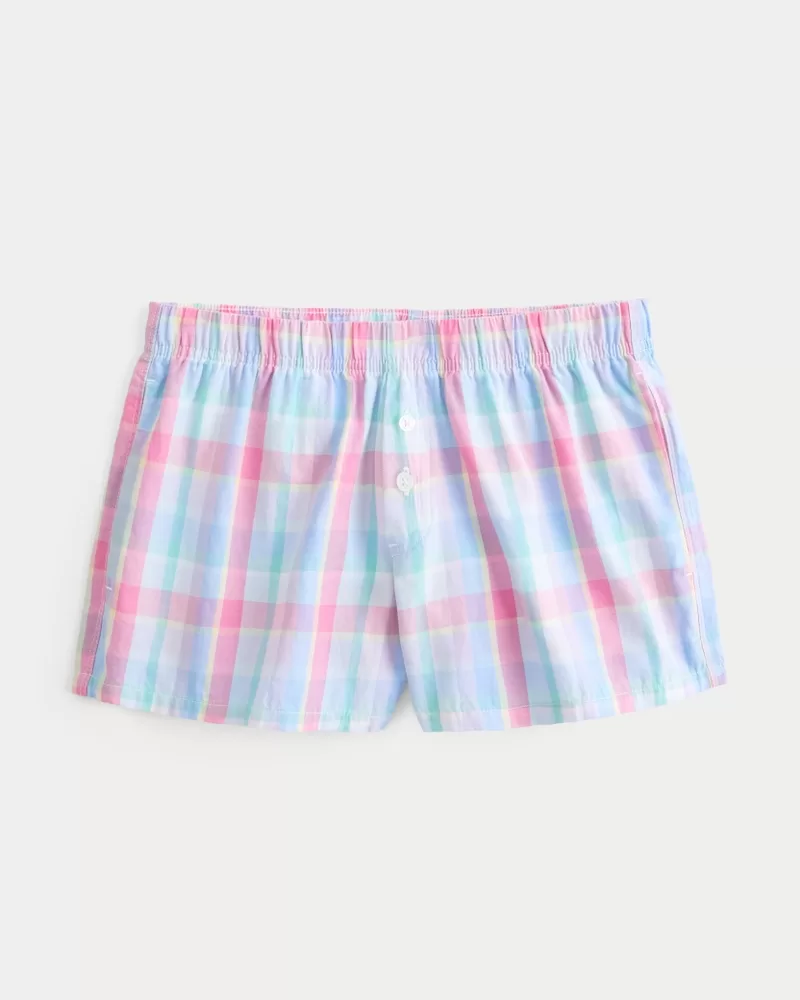 This cute and comfy shortie is made with soft Oxford cotton fabric. Banded adjustable-rise waistband, pockets, buttons, plaid pattern. Imported.
