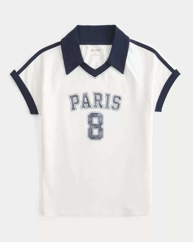Comfy and super soft, this soccer polo features a sporty Paris print graphic. Collar, short sleeves. Slim Fit.