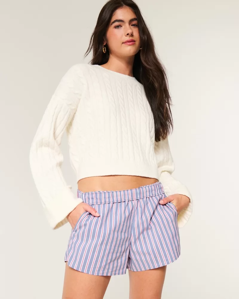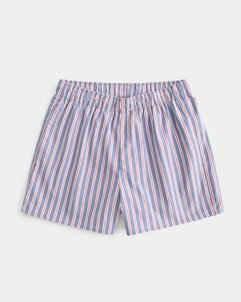 Cute and cozy boxer shorts in poplin fabric with a banded ultra high-rise waist and pockets. Imported.