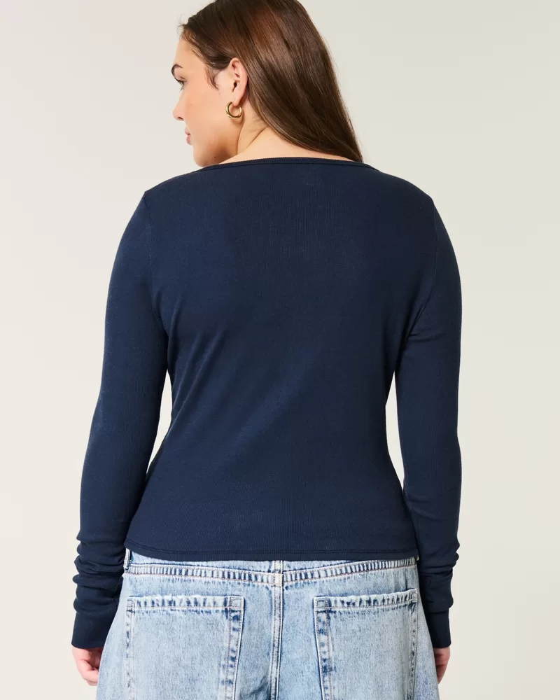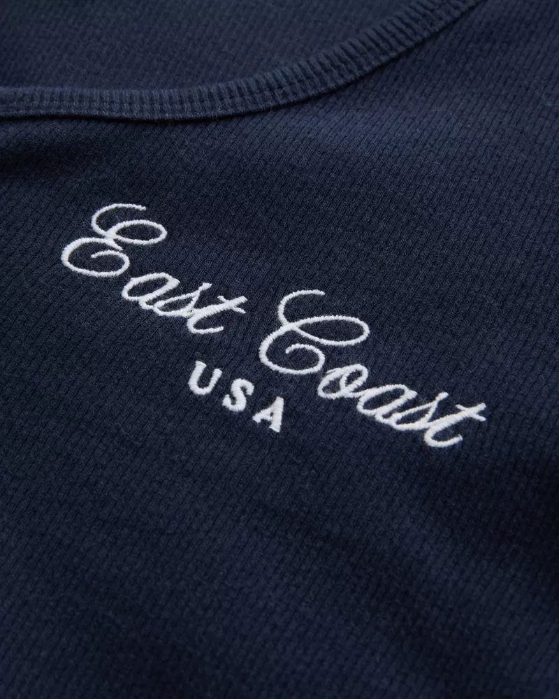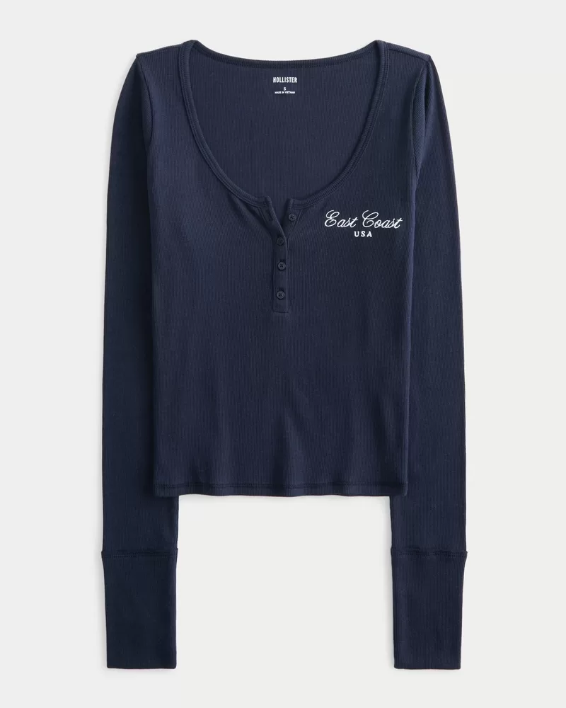 Made with super soft ribbed fabric, this henley features a button placket and embroidered East Coast USA graphic at the left chest. Long sleeves. Slim Fit. Imported.