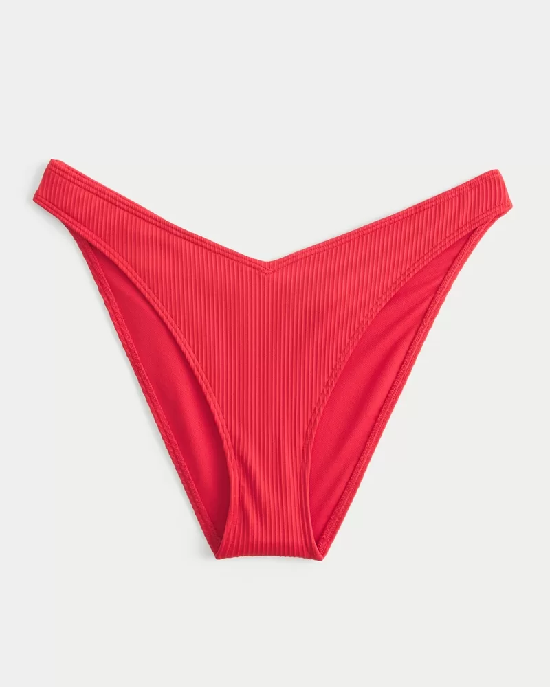 Ribbed High-Leg V-Waist Cheeky Bikini Bottom