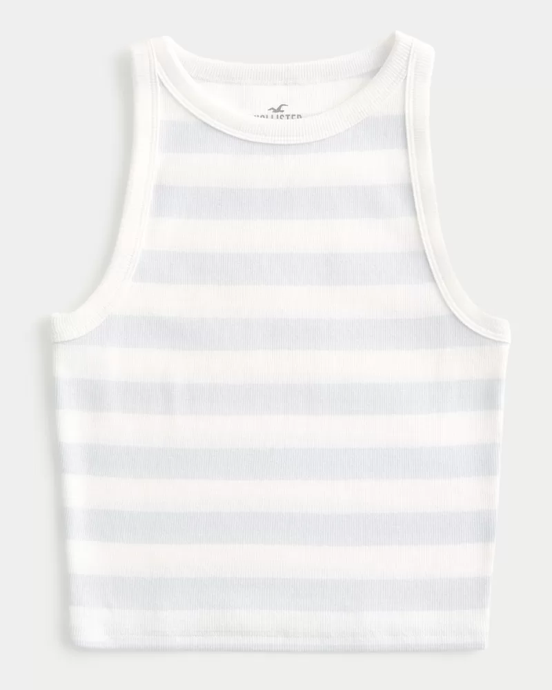 This cute tank is made with super soft ribbed fabric with stretch and features a flattering high neckline. Slim Fit.