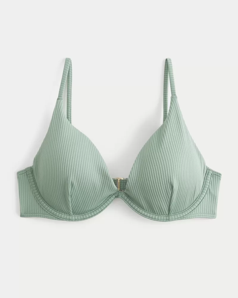 Ribbed Plunge Underwire Bikini Top,Ribbed Plunge Underwire Bikini Top