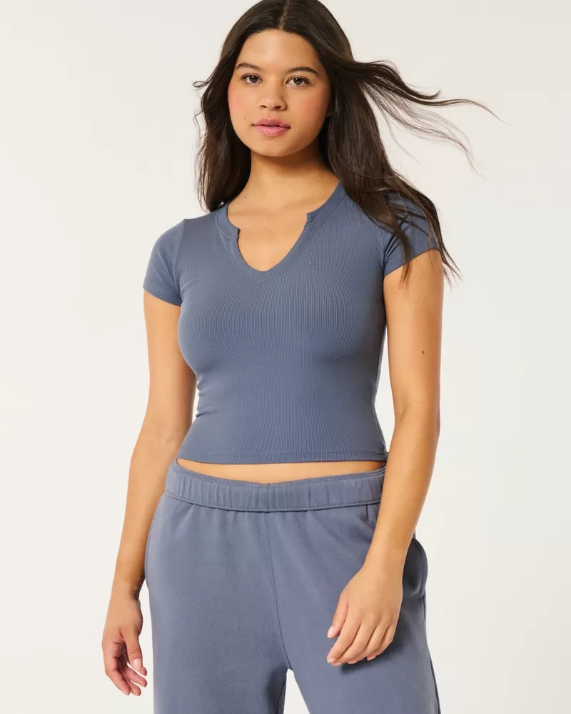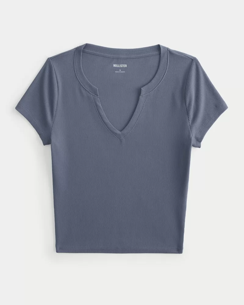 Ribbed Seamless Fabric Notch Neck Baby Tee,Ribbed Seamless Fabric Notch Neck Baby Tee