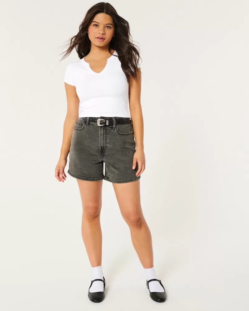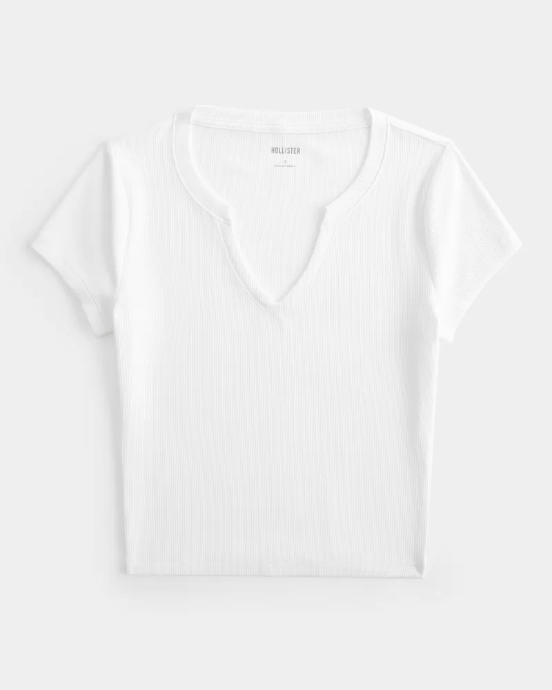 This cute and comfy baby tee is made with super soft ribbed fabric with a seamless look and feel. Short sleeves, notch neckline, slightly shrunken silhouette. Slim Fit.
