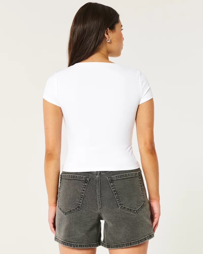 Ribbed Seamless Fabric Notch Neck Baby Tee,Ribbed Seamless Fabric Notch Neck Baby Tee
