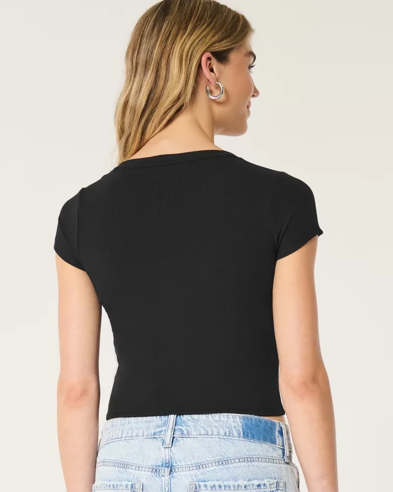 Ribbed Seamless Fabric Notch Neck Baby Tee