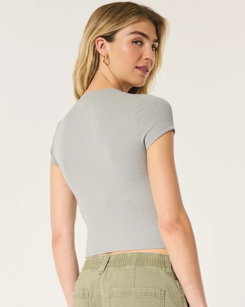 Ribbed Seamless Fabric Notch Neck Baby Tee