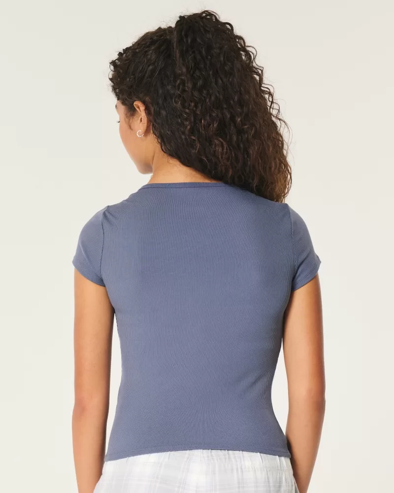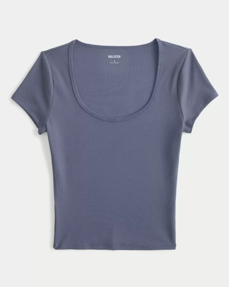 This cute and comfy baby tee is made with super soft ribbed fabric with a seamless look and feel. Short sleeves, scoop neckline. Slim Fit.