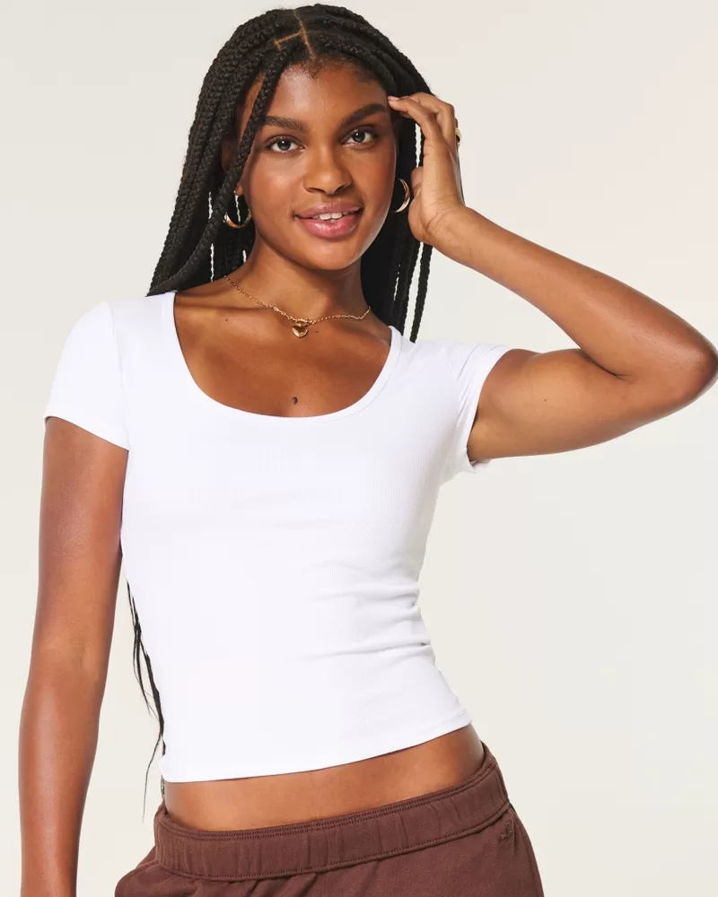 Ribbed Seamless Fabric Scoop Baby Tee,Ribbed Seamless Fabric Scoop Baby Tee