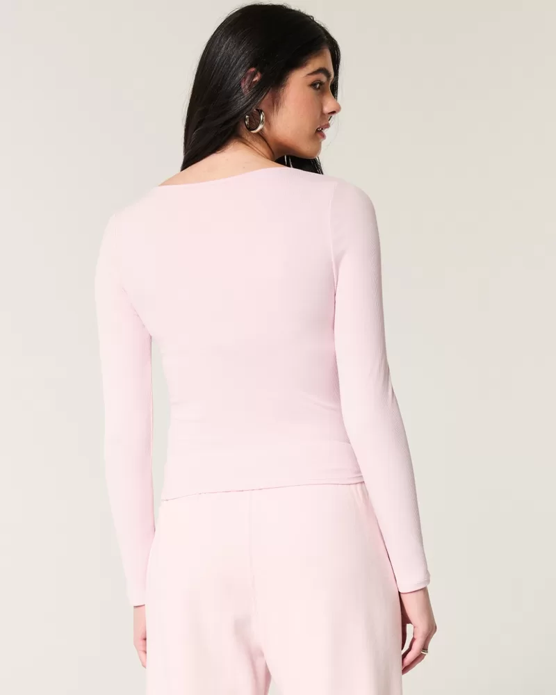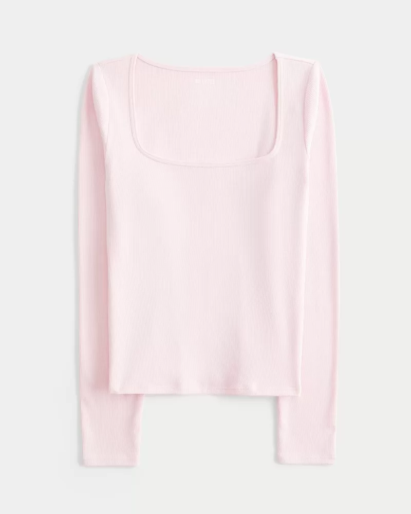 An ultra-soft and cozy long-sleeve top in ribbed fabric with a seamless look and feel. Square neckline, long sleeves. Slim Fit. Imported.