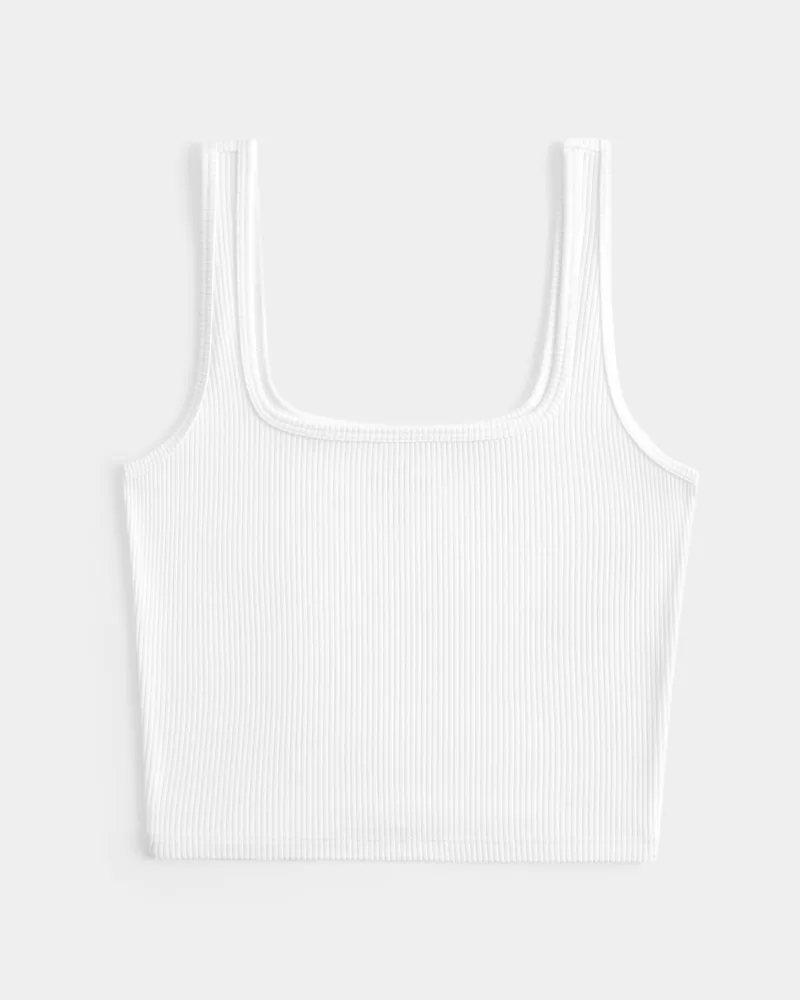 A cute and comfy tank in super soft ribbed fabric with a seamless look and feel. Square neckline. Slim Fit.