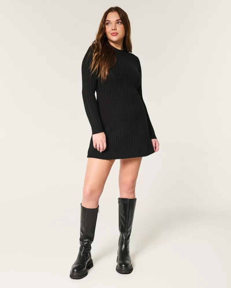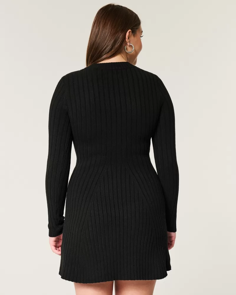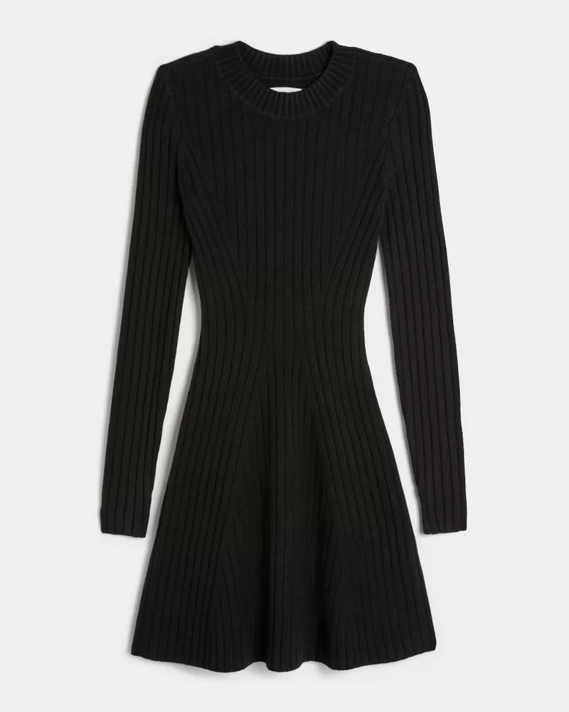 Super soft and comfortable, this long-sleeve mini dress features a crew neckline, ribbed texture and skater silhouette. Long sleeves, cozy sweater-knit fabric. Imported.