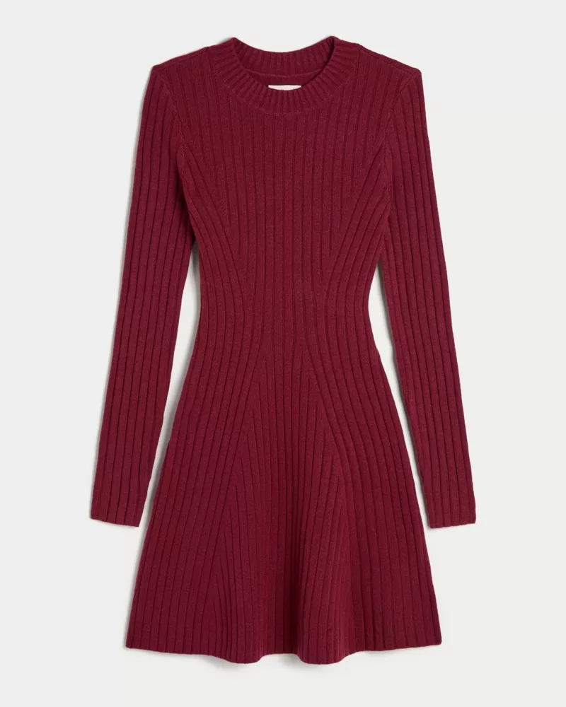 Super soft and comfortable, this long-sleeve mini dress features a crew neckline, ribbed texture and skater silhouette. Long sleeves, cozy sweater-knit fabric. Imported.