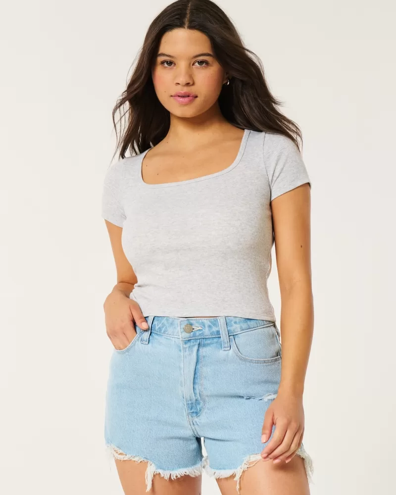 Ribbed Square-Neck Baby Tee