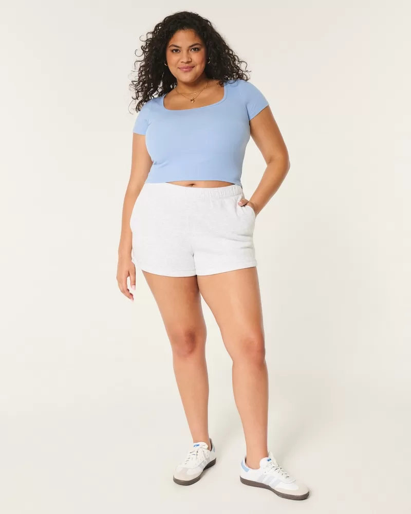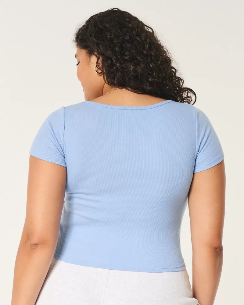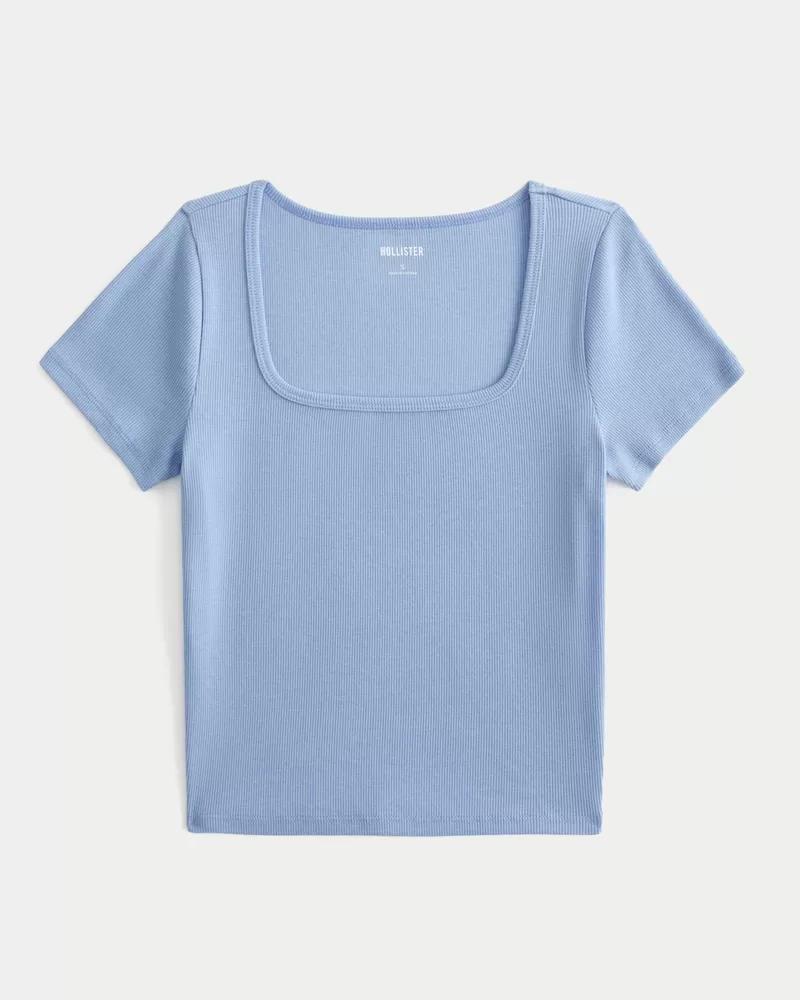 A cozy and super soft short-sleeve baby tee in ribbed fabric. Square neckline, short sleeves. Slim Fit.