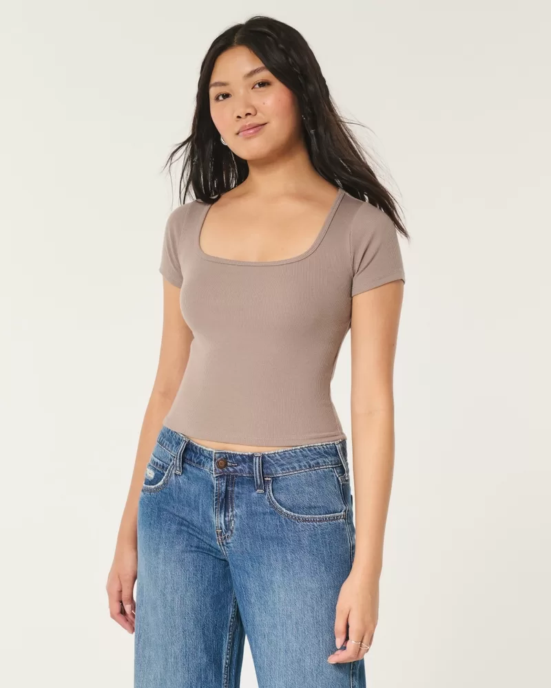 Ribbed Square-Neck Baby Tee