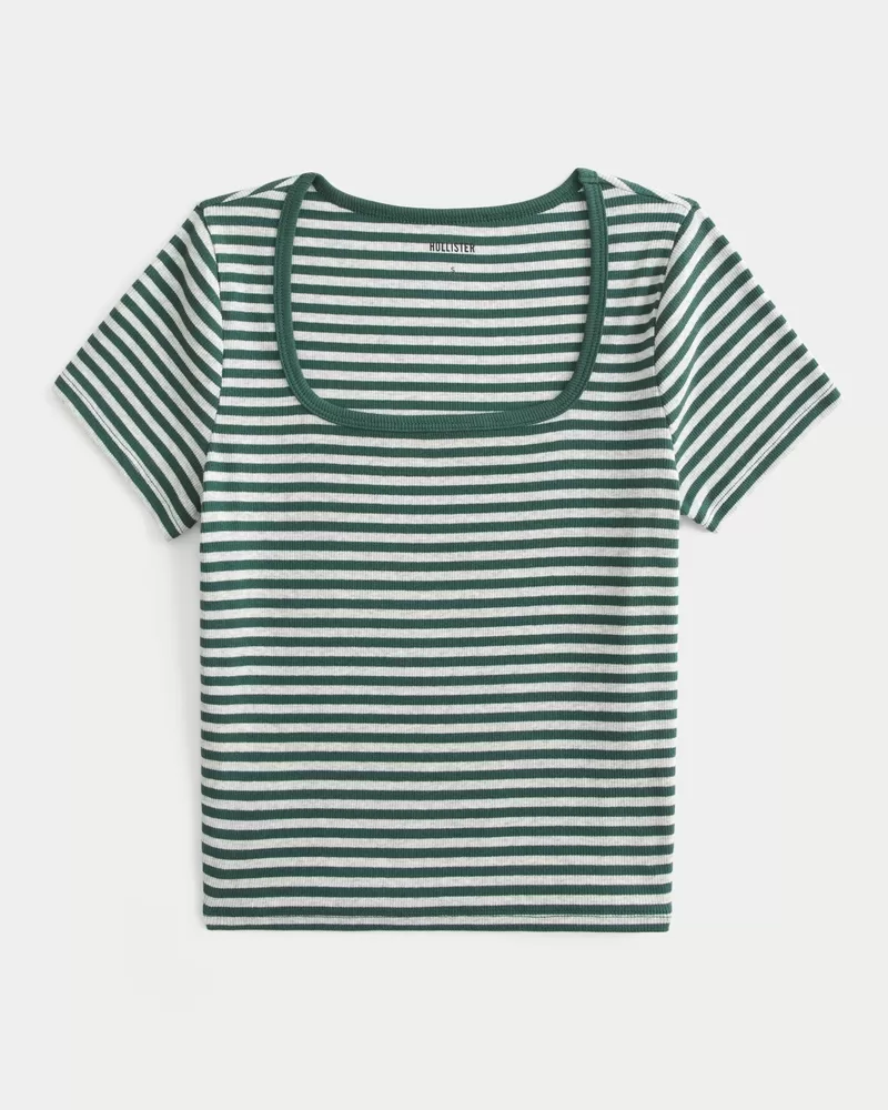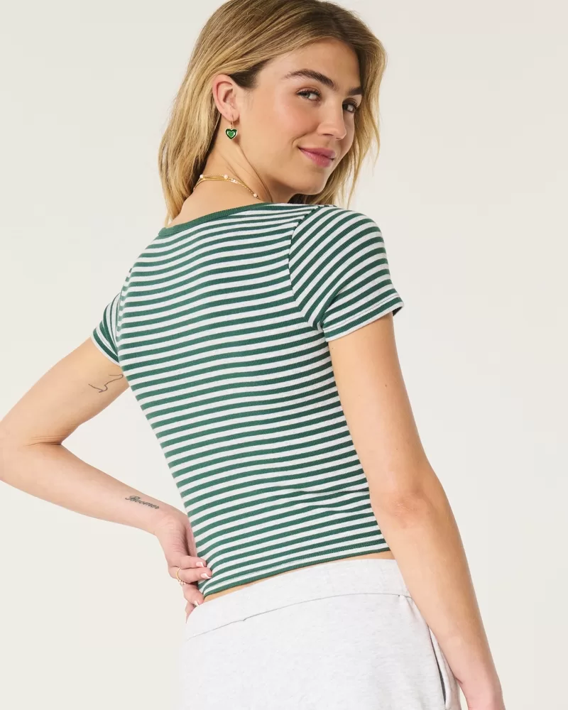 A cozy and super soft short-sleeve baby tee in ribbed fabric. Square neckline, short sleeves. Slim Fit.