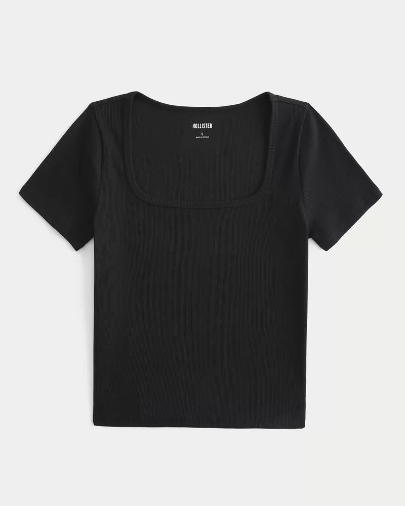 Ribbed Square-Neck Baby Tee,Ribbed Square-Neck Baby Tee