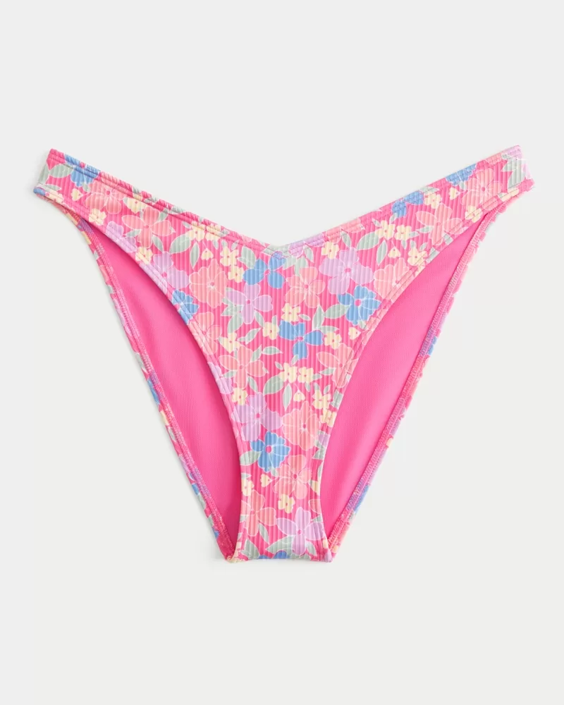 Ribbed V-Front High-Leg Cheeky Bikini Bottom