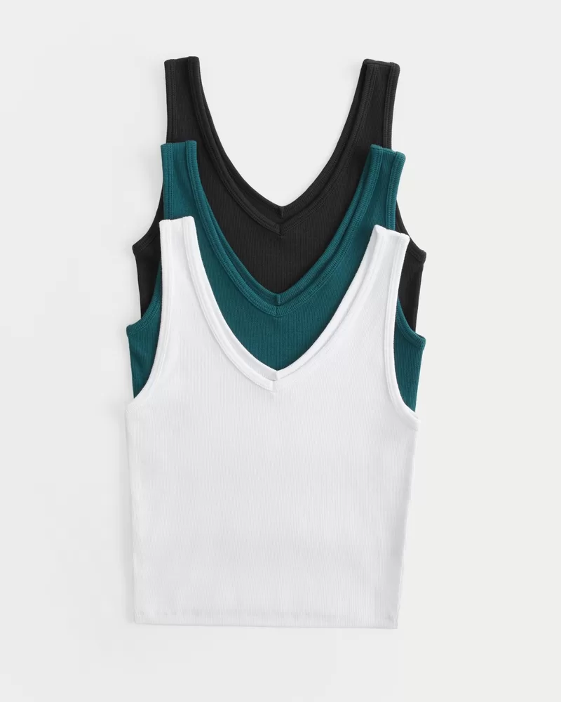Ribbed V-Neck Tank 3-Pack