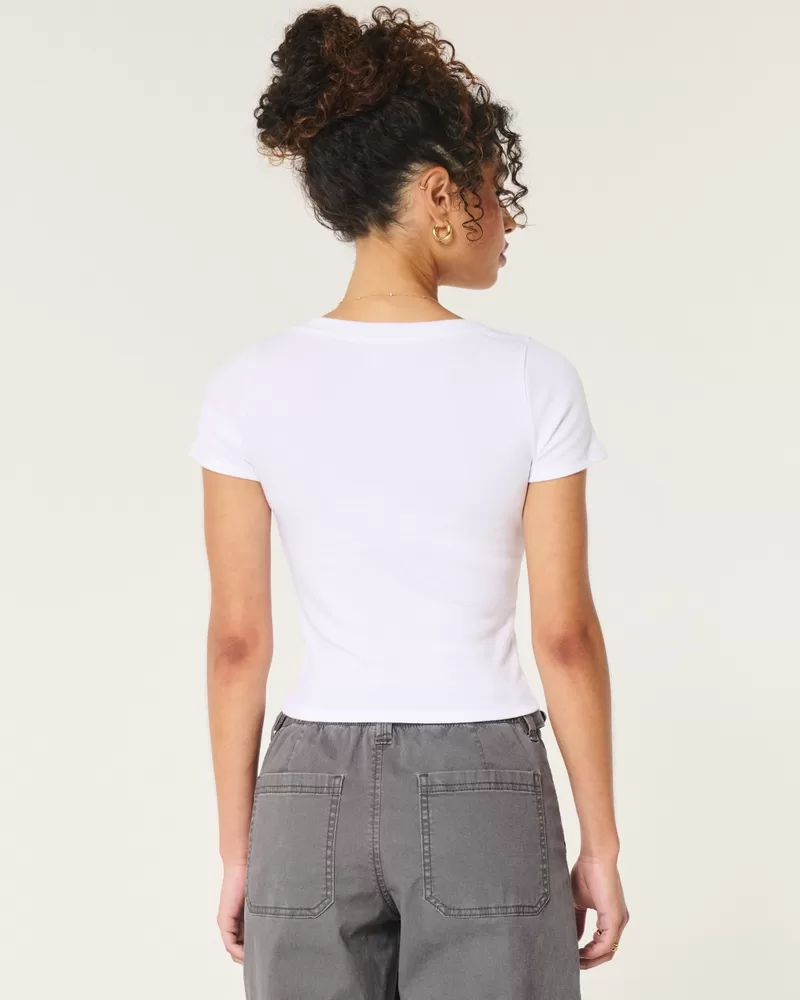 A cute and cozy top in super soft ribbed fabric with short sleeves and a v-neckline. Slim Fit.
