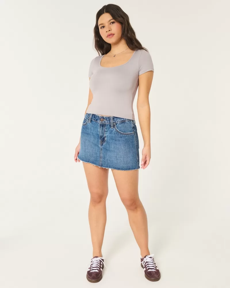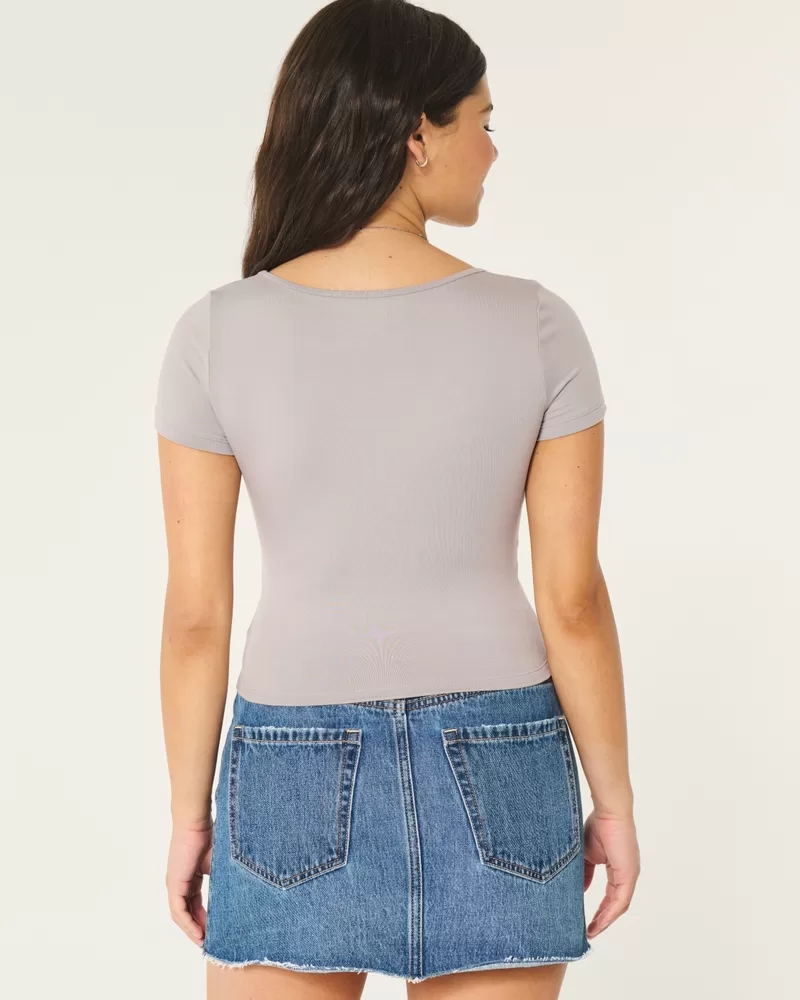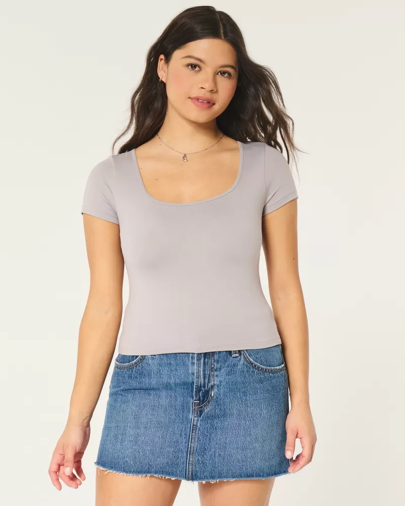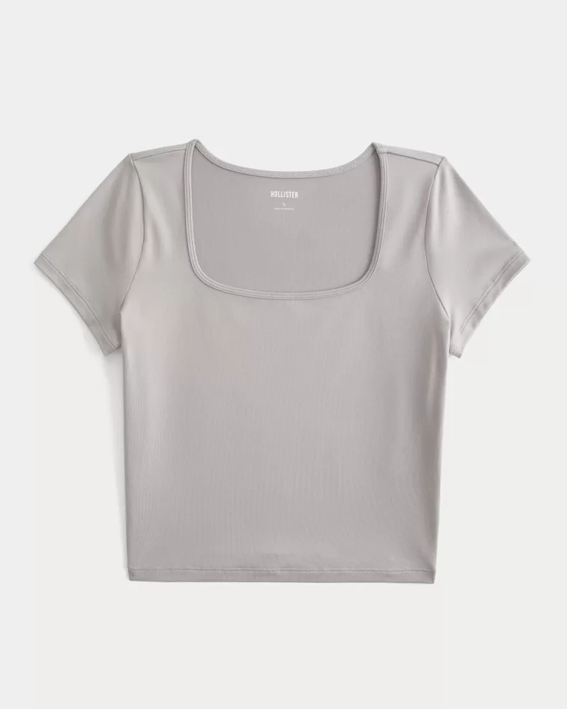 This comfy baby tee is made with super soft fabric with a seamless look and feel. Square neckline, short sleeves. Slim Fit. Imported.
