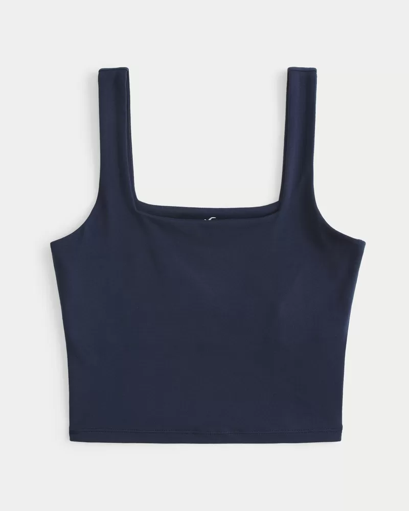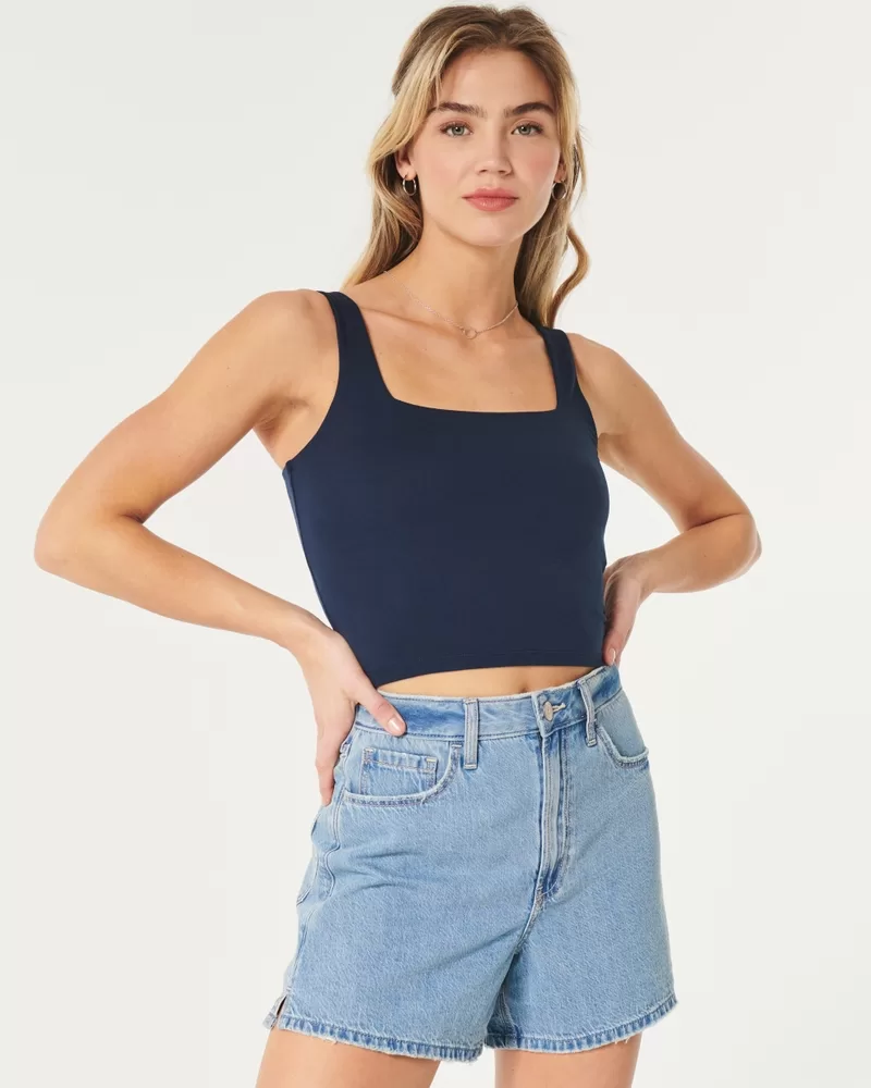 This cute tank is made with super soft fabric with a seamless look and feel. Square neckline, shelf bra, stretch. Slim Fit.