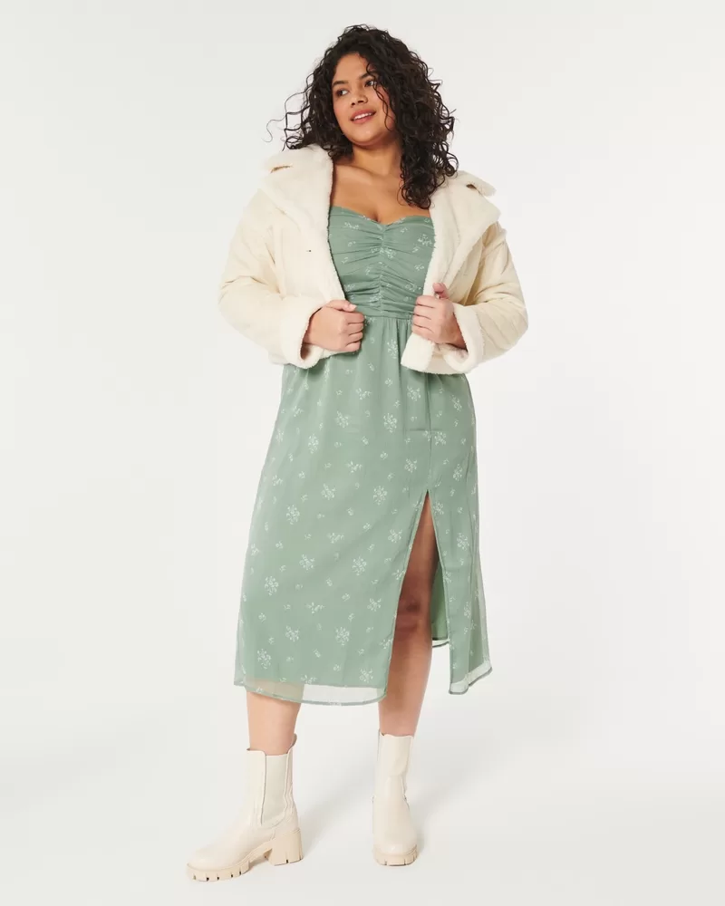 Sherpa-Lined Faux Suede Crop Biker Jacket,Sherpa-Lined Faux Suede Crop Biker Jacket