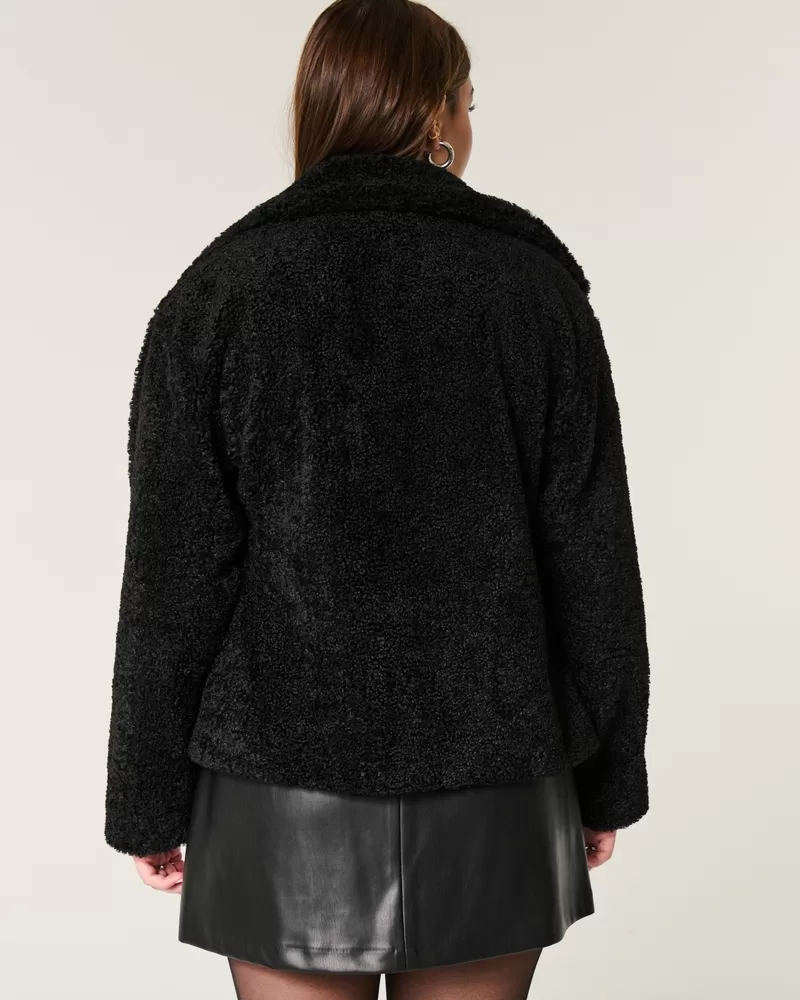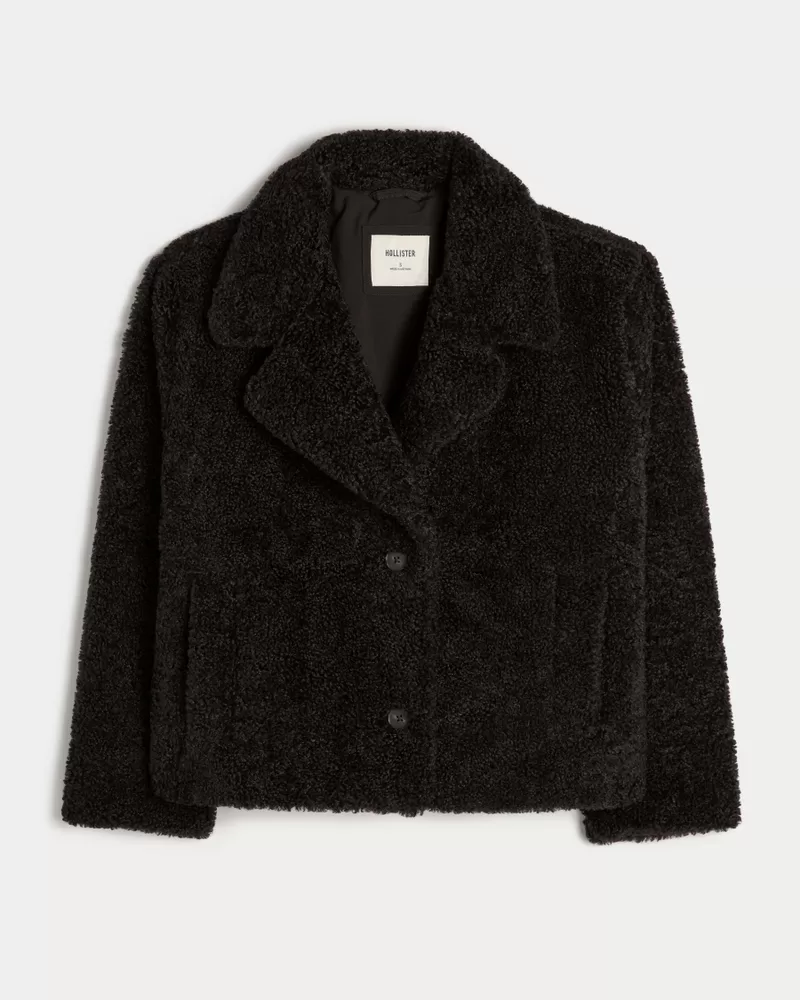 This cute and cozy peacoat features a super soft sherpa exterior and button closure. Collar, front pockets, interior pocket, fully lined. Imported.
