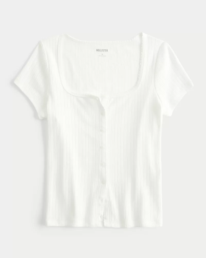 Short-Sleeve Button-Through Pointelle Top
