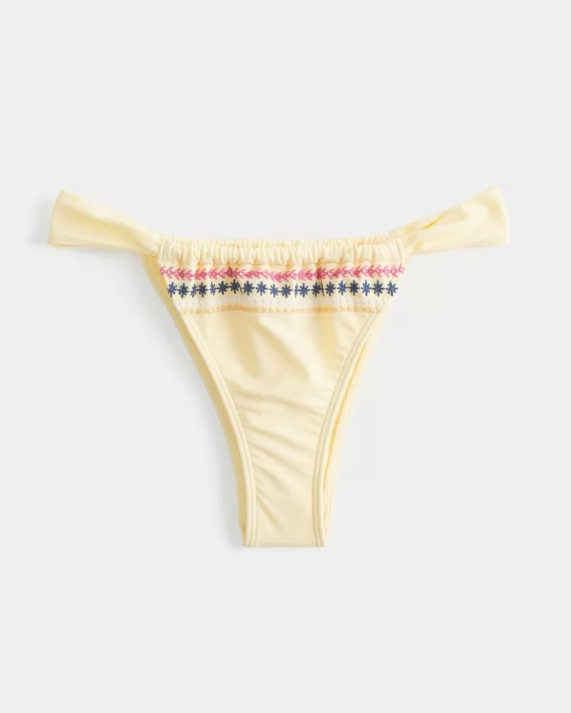 Side Strap Embroidered High-Leg Cheekiest Bikini Bottom,Side Strap Embroidered High-Leg Cheekiest Bikini Bottom