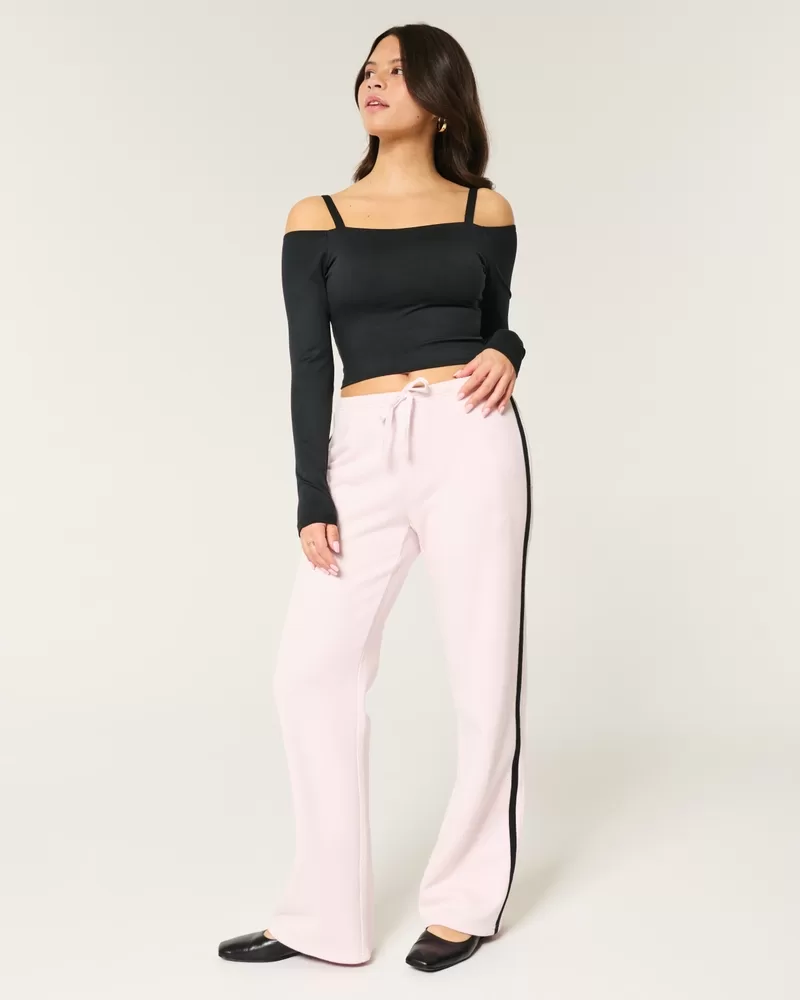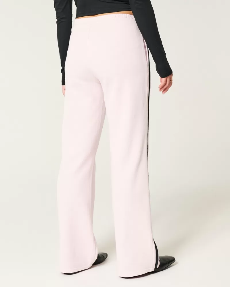 Super soft fleece sweatpants with a straight leg and sporty stripes along the sides. Soft drawstring waist, pockets. Imported.