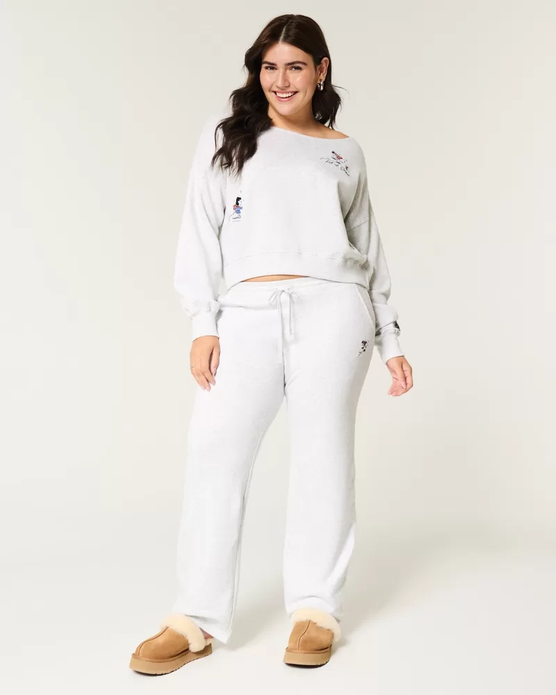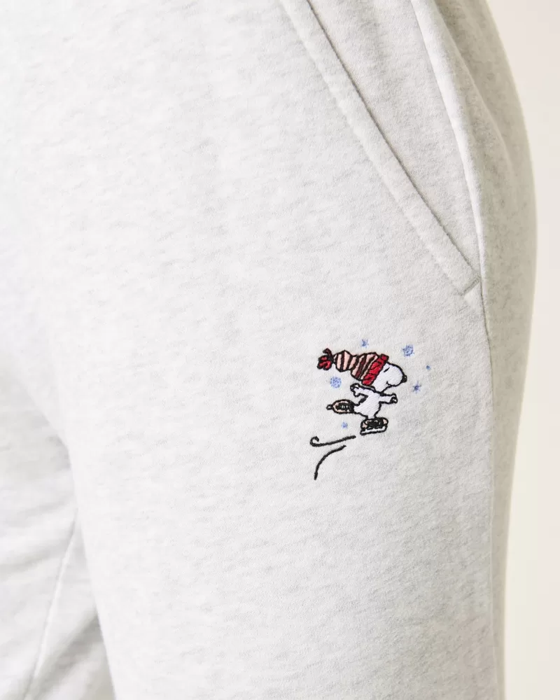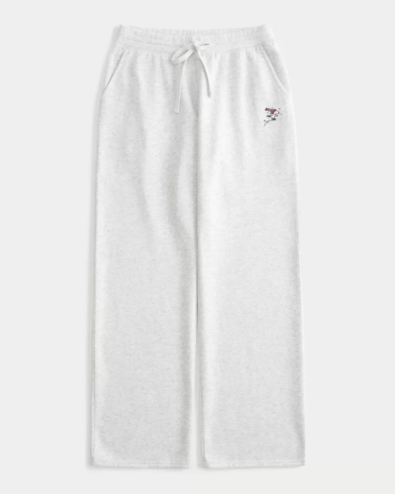 Super soft fleece sweatpants designed with a straight leg and drawstring waist. Official Peanuts-licensed Snoopy graphic embroidery, pockets, mid-rise waist. Imported.