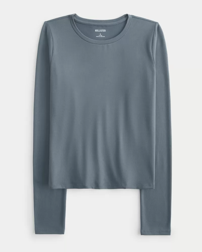 Soft Stretch Seamless Fabric Long-Sleeve Crew Top