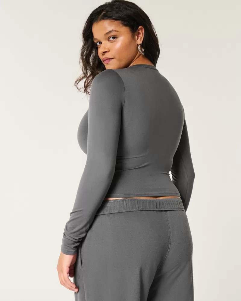 Soft Stretch Seamless Fabric Long-Sleeve Crew Top