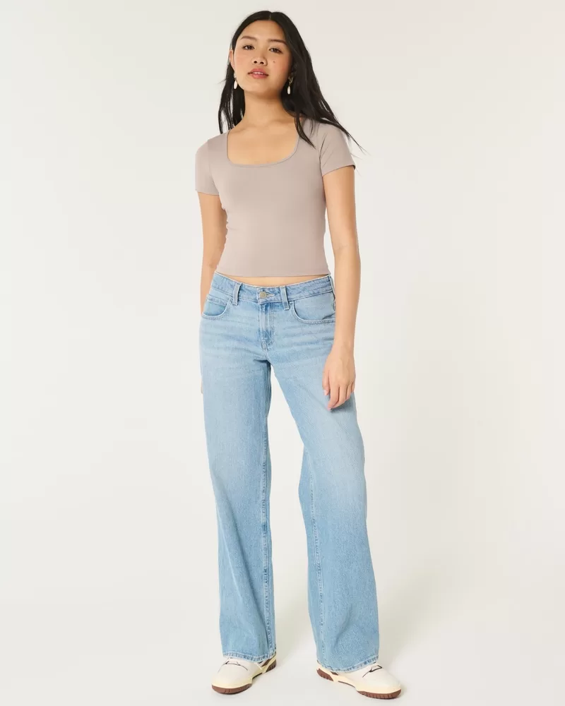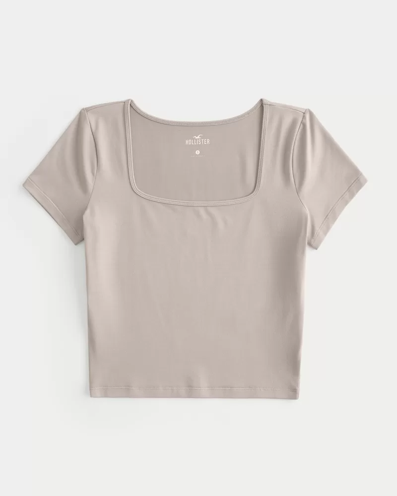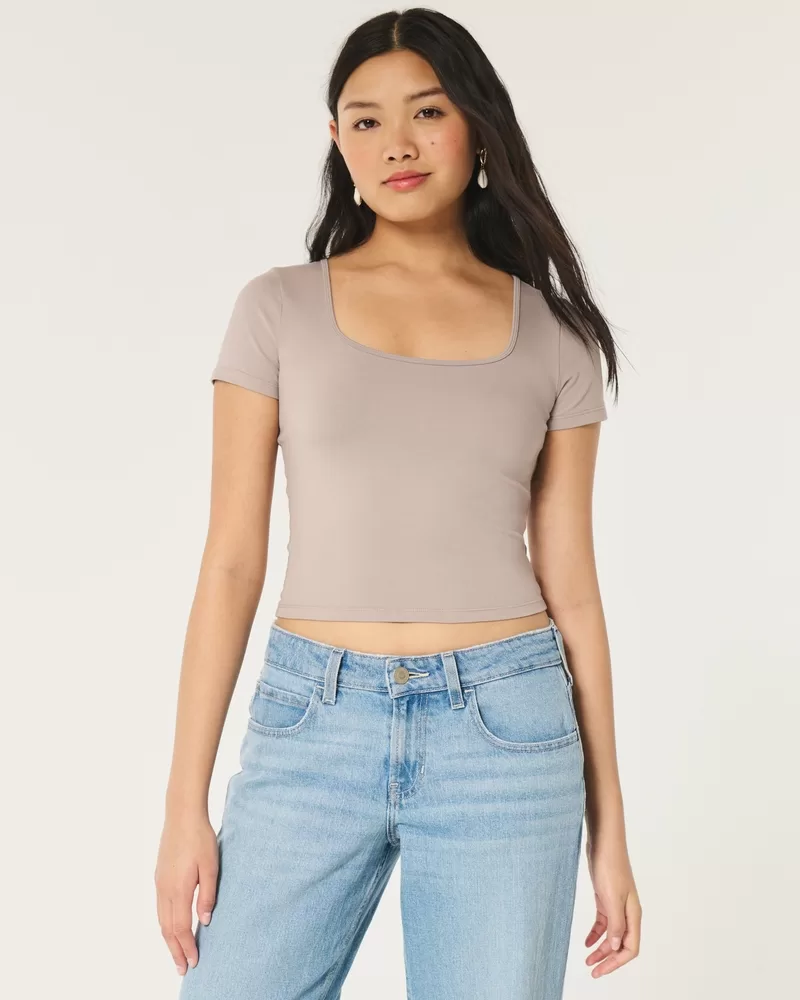 A comfy baby tee in soft stretch fabric made with a seamless look and feel. Square neckline, short sleeves. Slim Fit. Imported.