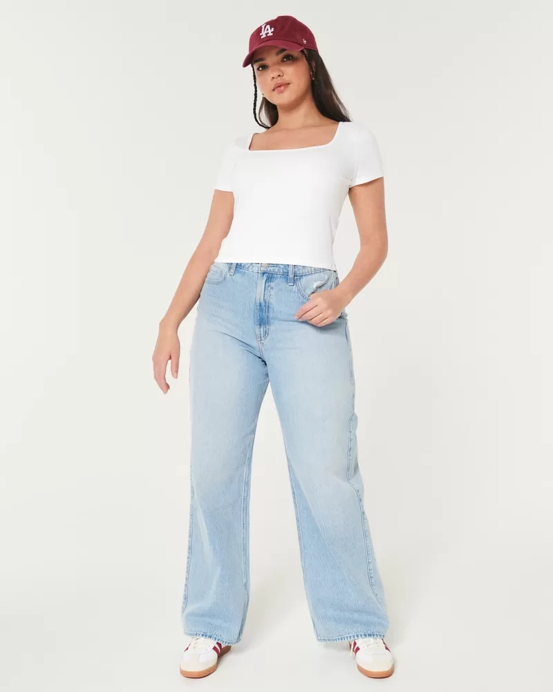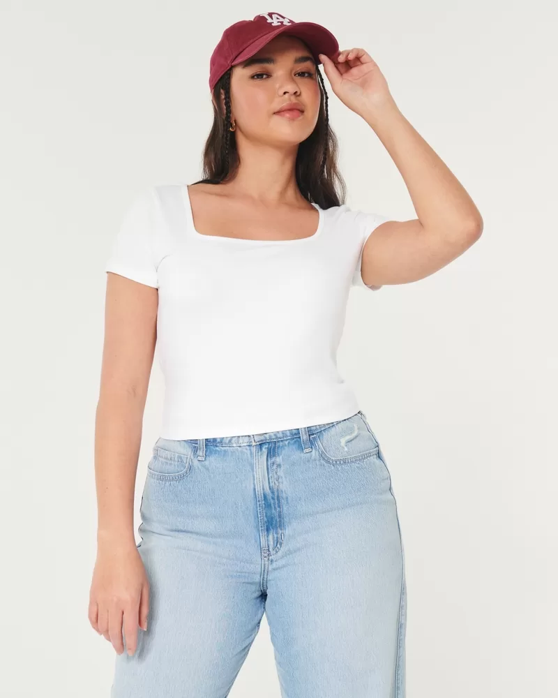 A comfy baby tee in soft stretch fabric made with a seamless look and feel. Square neckline, short sleeves. Slim Fit. Imported.