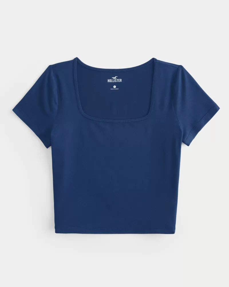 A comfy baby tee in soft stretch fabric made with a seamless look and feel. Square neckline, short sleeves. Slim Fit. Imported.